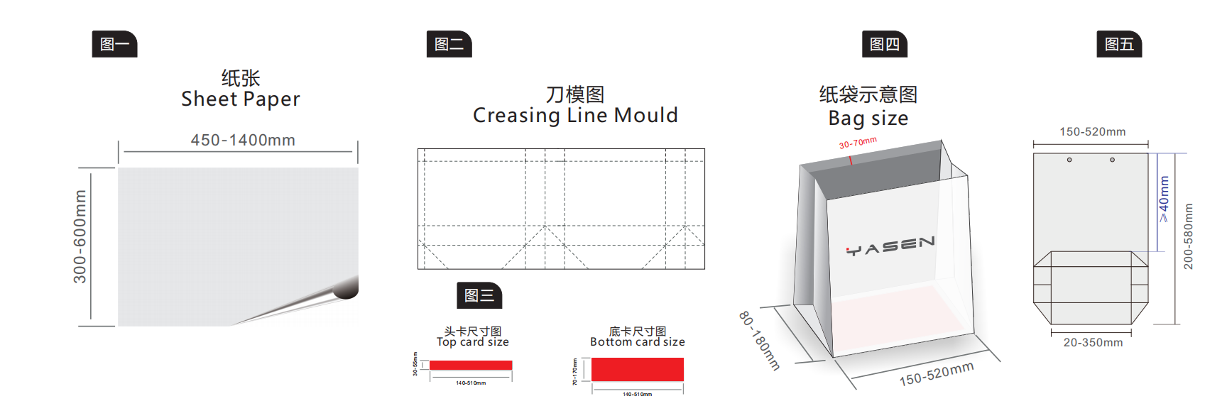 制作纸袋的尺寸和克重的范围大, 纸袋应用广泛;
