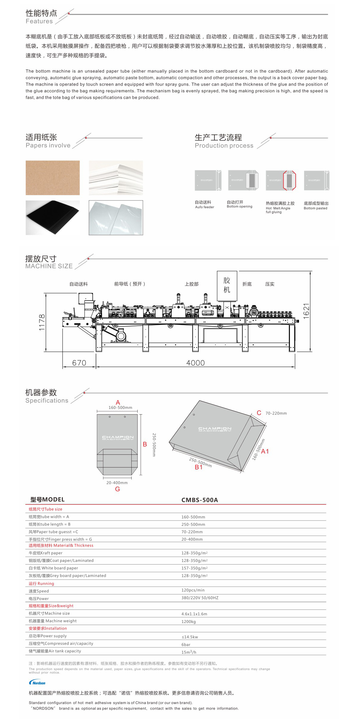 • 纸袋机使用的纸张大小、厚度,范围广